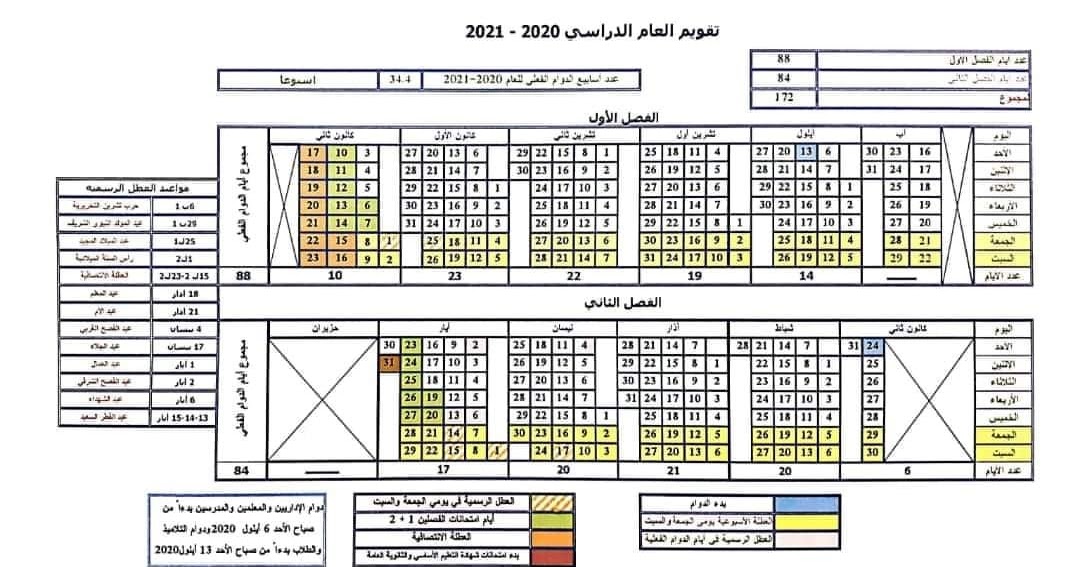 التقويم الدراسي 2020 2021 في سوريا العام الدراسي 2021 في سورية